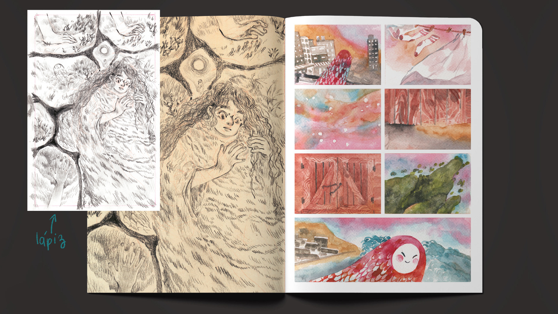 “Aridez” es un homenaje ilustrado a la Patagonia atlántica, las vicisitudes de su clima y la diversidad de la vida que anida y rompe la idea de desolación.